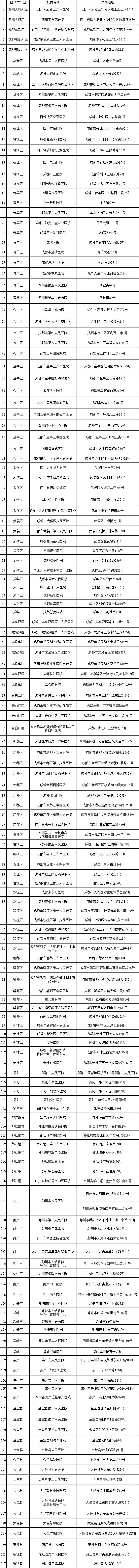 为方便市民进行新冠病毒核酸检测,2月21日,成都卫健委官方微信公布全市152家提供24小时核酸检测服务医疗机构名单、25家“黄码”人员核酸检测定点医疗机构名单和33家临时核酸检测便民采样点名单(名单附后)。