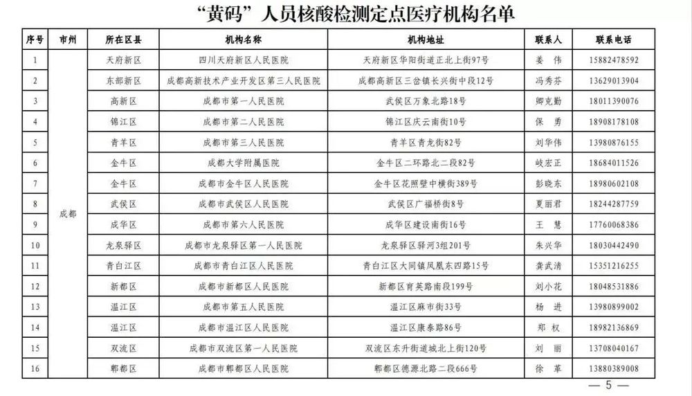 附成都24小时核酸检测服务医疗机构、“黄码”人员核酸检测定点医疗机构、临时核酸检测便民采样点名单↓↓↓