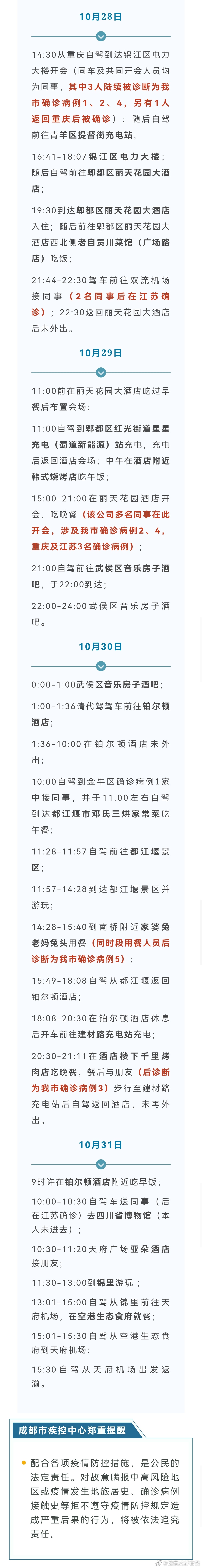 成都疾控紧急公告:重庆本土确诊病例3曾到成都市多个地区活动